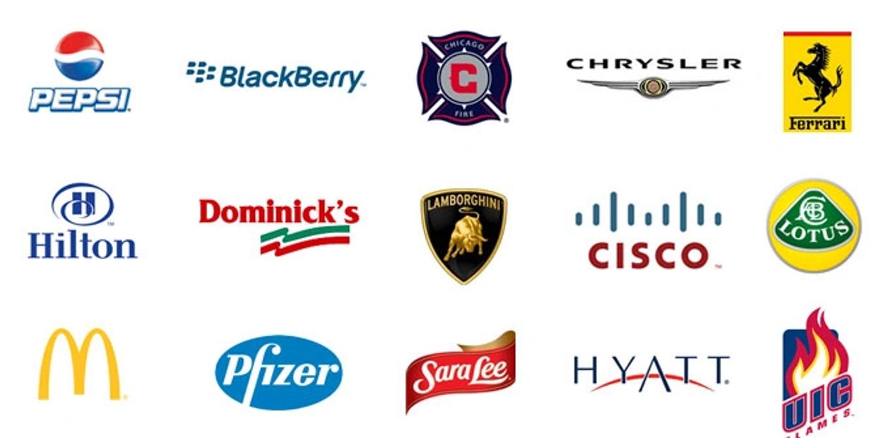 Hyatt, Canon, Chicago White Soxs, NFL, University of Notre Damn, Komatsu, Chicago Transit Authority, Purina, Pepsi, University of California, AT&T, Adobe, RedBull, Lincoln Park Zoo, RIC, Target, TripAdvisor, UIC, Porsche, Virgin Airlines, Wonder Museum Chicago, National Restaurant Association, Magid Glove, CISCO,IIT Kent, Ronald McDonald House, Medieval Times, Joliet Catholic, USAA, 4WEB, Wheatland Metal, Toms Price, GE, Abbott Labs, Drury Lane, Tilted Kilt, Browns Chicken, Loan Payment Pro, Black Bear Casino, & More.